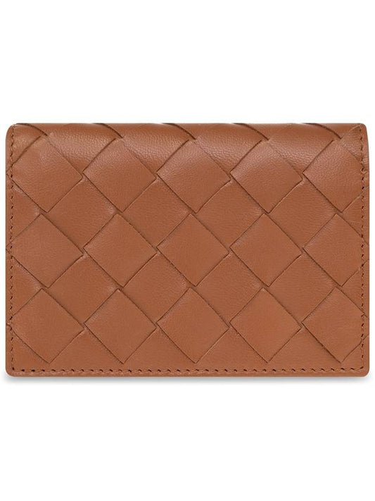 Bottega Veneta Intrecciato Flap Business Card Wallet Brown