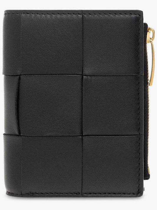 Bottega Veneta Cassette Zipper Bifold Half Wallet Black