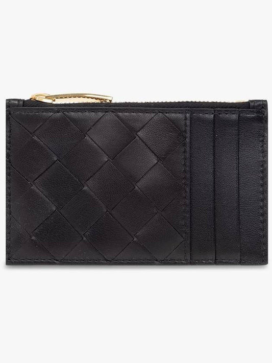 Bottega Veneta Intrecciato Zipper Leather Card Wallet Black