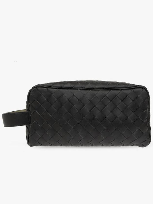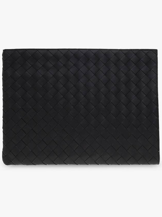 Bottega Veneta Intrecciato Half-Zip Clutch Bag Black