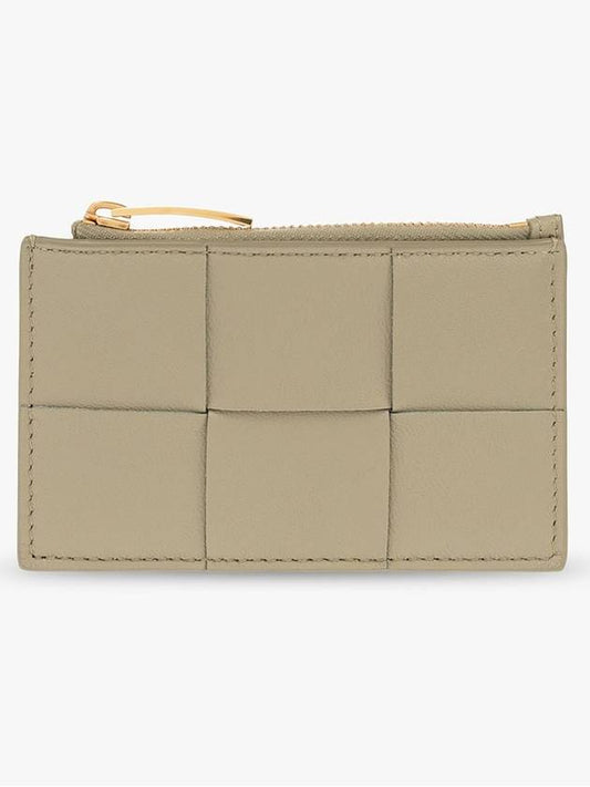 Bottega Veneta Intrecciato Zipper Card Wallet Travertine