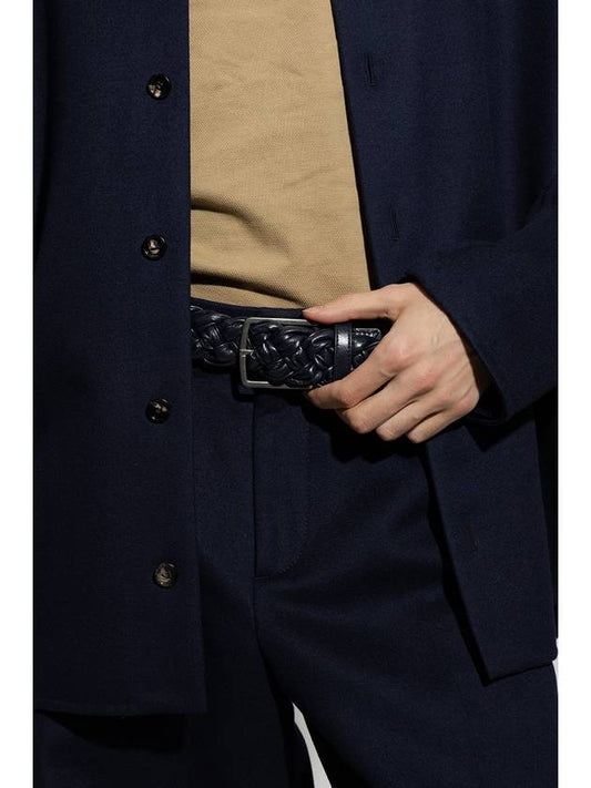 Bottega Veneta Bottega Veneta Woven Leather Belt, Men's, Navy Blue