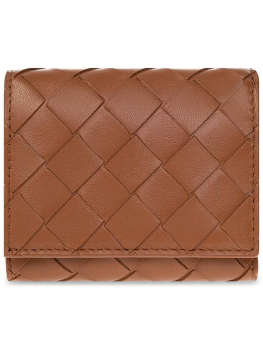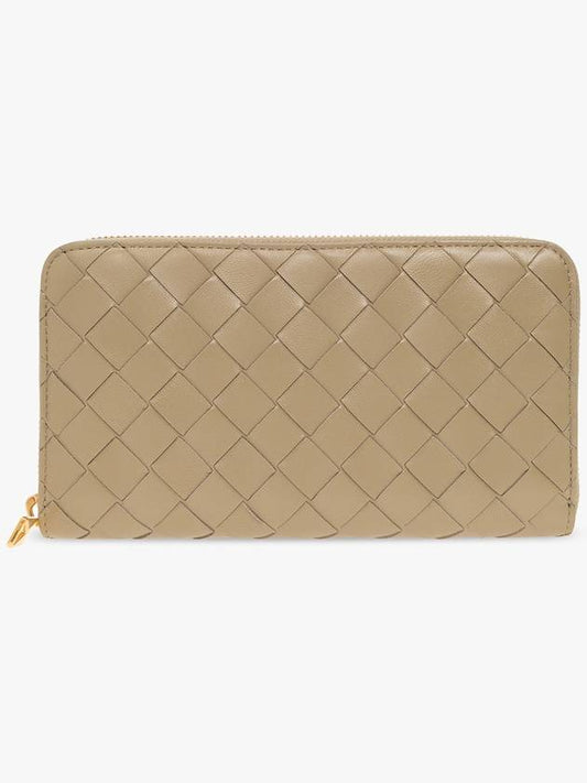 Bottega Veneta Intrecciato Zip Leather Half Wallet Wood
