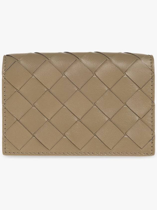 Bottega Veneta Intrecciato Flap Business Card Wallet Taupe