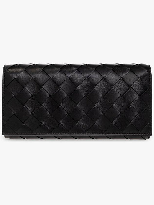 Bottega Veneta Intrecciato Large Flap Long Wallet Black