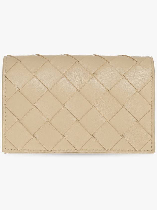 Bottega Veneta Intrecciato Leather Card Wallet Beige