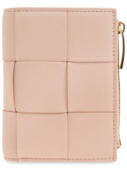 Bottega Veneta Cassette Zipper Bifold Half Wallet Light Pink