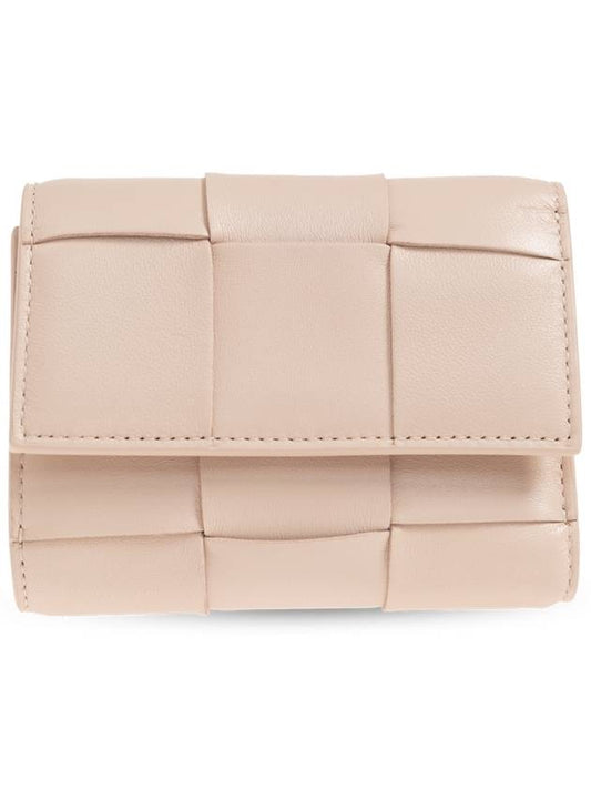 Bottega Veneta Cassette Tri-Fold Zipper Half Wallet Pink