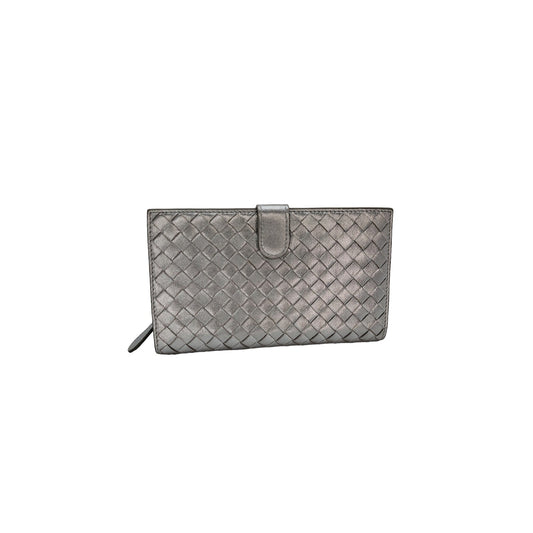 Bottega Veneta Intrecciato Continental Wallet Metallic Silver