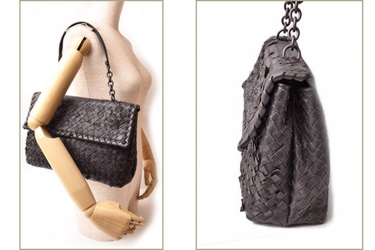 Bottega Veneta Nappa Embossed Leather Shoulder Chain Bag