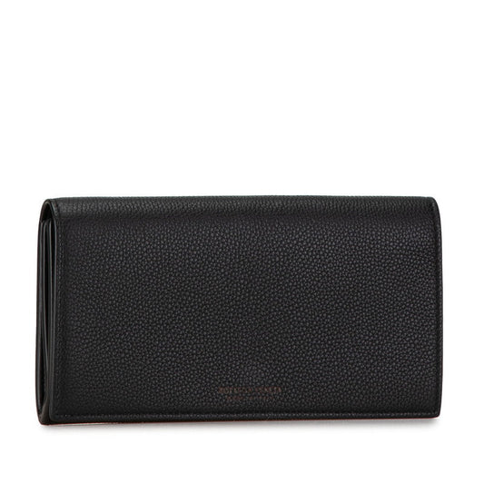 Bottega Veneta Leather Logo Long Wallet Black