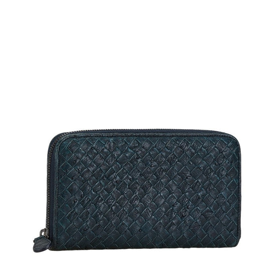 Bottega Veneta Intrecciato Ostrich Leather Zip-Around Wallet