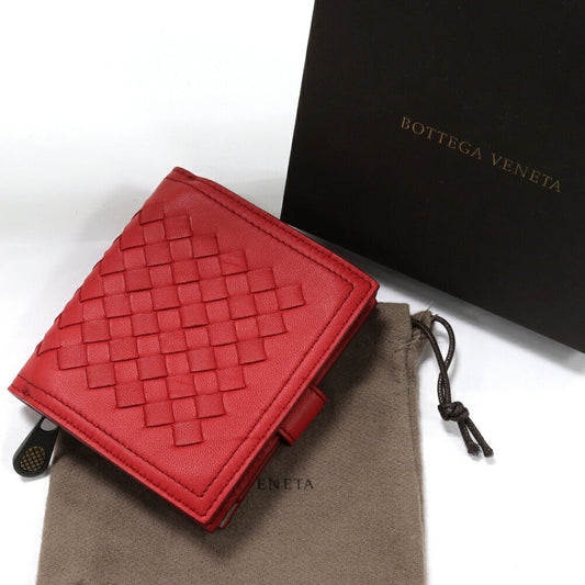 Bottega Veneta Lambskin Compact Wallet Red Gray
