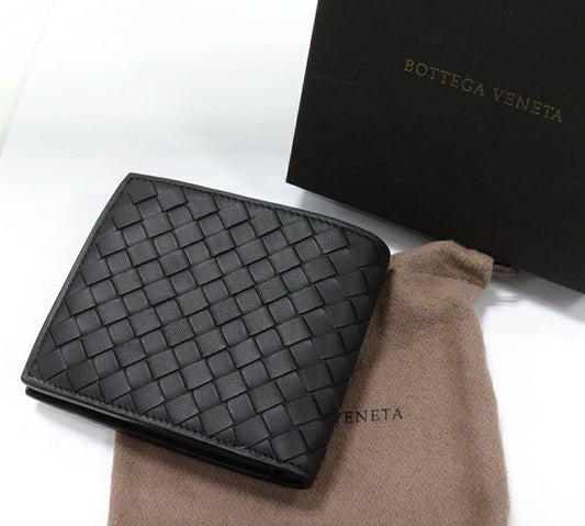 Bottega Veneta Lambskin Bifold Wallet Black Ivory