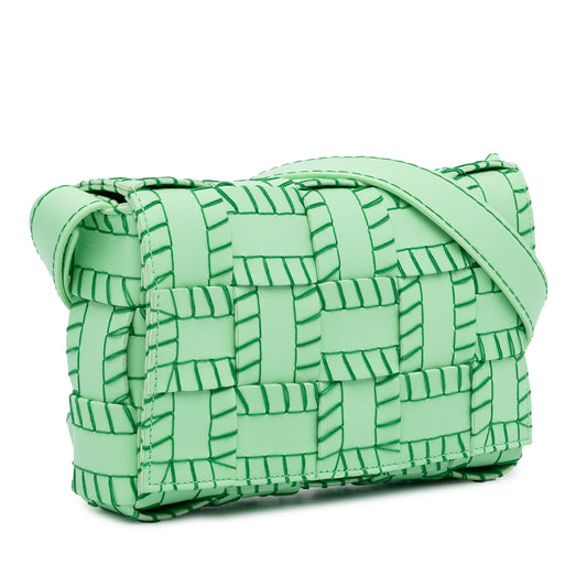 Green Bottega Veneta Calfskin Intrecciato Cassette Crossbody
