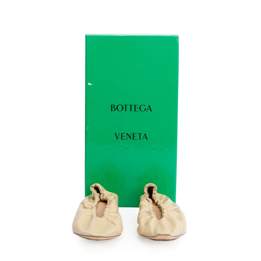 Bottega Veneta Beige Crush Nappa Leather Ballerina Flats, Size 38 w/ Box