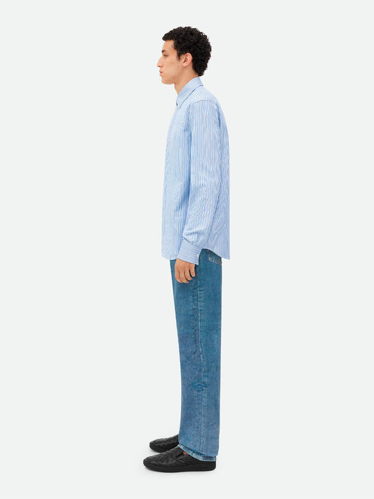 Bottega Veneta Men Light Grey Washed Denim Shirt