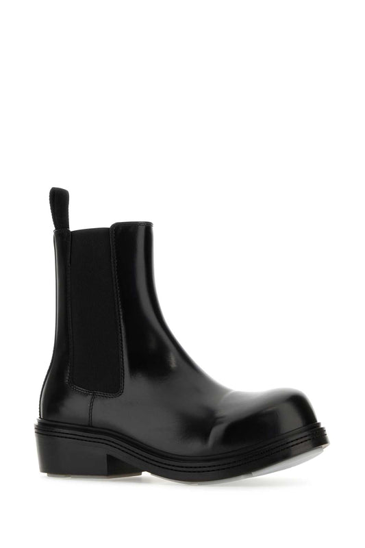 Bottega Veneta Men Black Leather Fireman Ankle Boots