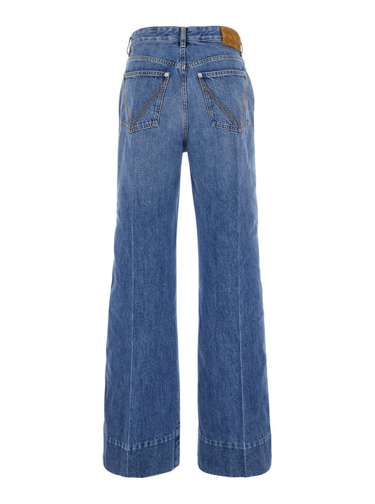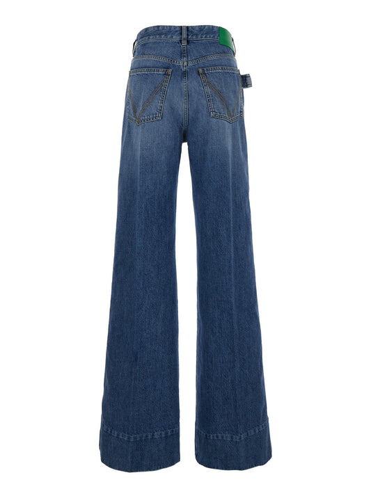 Bottega Veneta Women 'Indigo' Blue Palazzo Jeans With Logo Patch On The Back In Cotton Woman