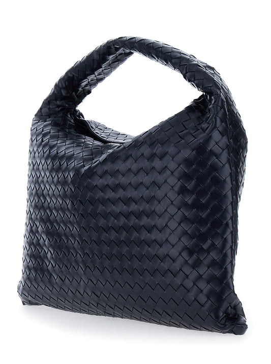 Bottega Veneta Women 'Hop Large' Blue Shoulder Bag With Intreccio Motif In Leather Woman