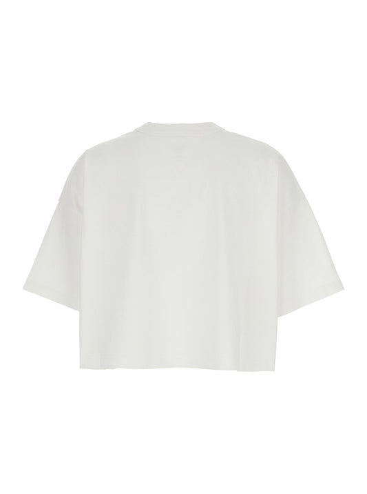 Bottega Veneta Women White Cropped T-Shirt With Heart Detail On The Pocket In Cotton Woman