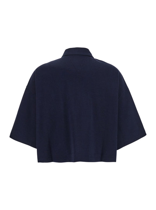 Bottega Veneta Women Blue Cropped Polo Shirt With Embroidered Logo In Cotton Piquet Woman