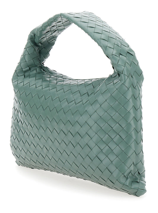 Bottega Veneta Women 'Hop Small' Light Green Shoulder Bag With Intreccio Motif In Leather Woman
