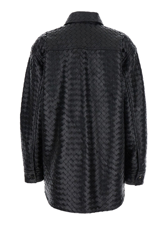 Bottega Veneta Women Black Shirt With All-Over Woven Pattern In Leather Woman