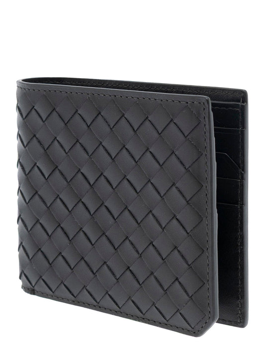 Bottega Veneta Men Green Bi-Fold Wallet With Intrecciato Motif And Embossed Logo Lettering On The Inside In Leather Man