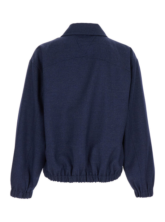 Bottega Veneta Men Blue Jacket With Classic Collar And Front Zip Closure In Wool Man