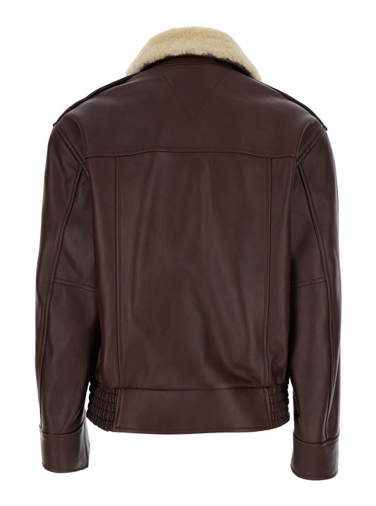 Bottega Veneta Women Brown Shearling Coat With Removable Fur Collar And Front Zip Closure In Leather Woman
