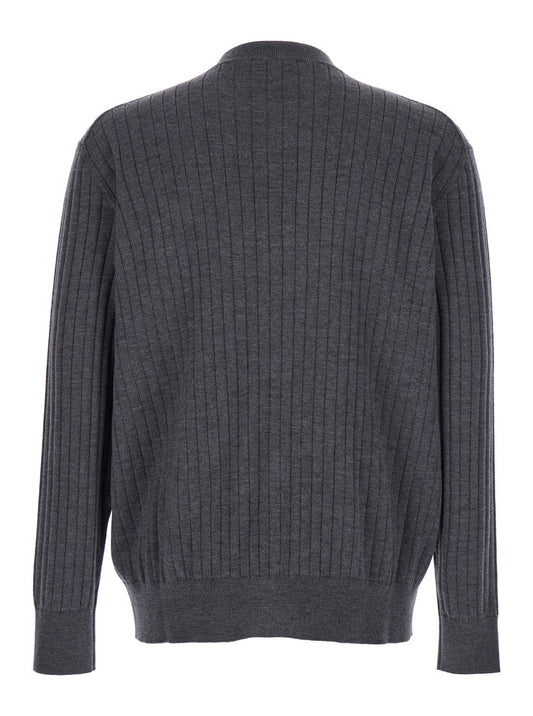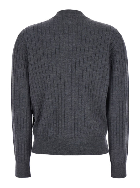Bottega Veneta Men Grey Crewneck Cardigan With Front Button Closure And Ribbed Knit In Wool Man