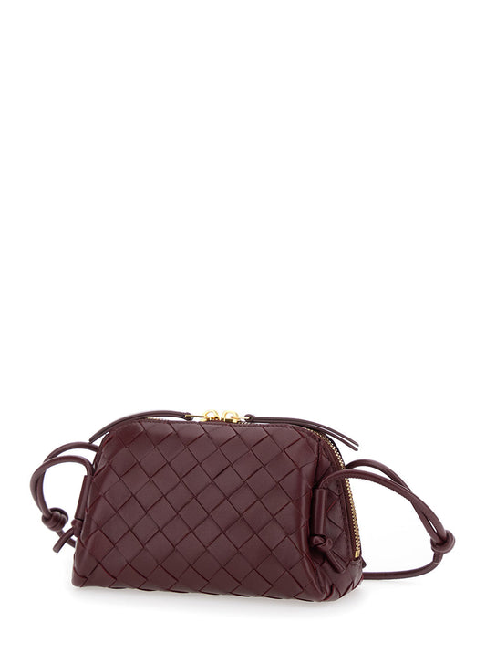 Bottega Veneta Women 'Concert' Bordeaux Crossbody Bag With Intreccio Motif In Leather Woman