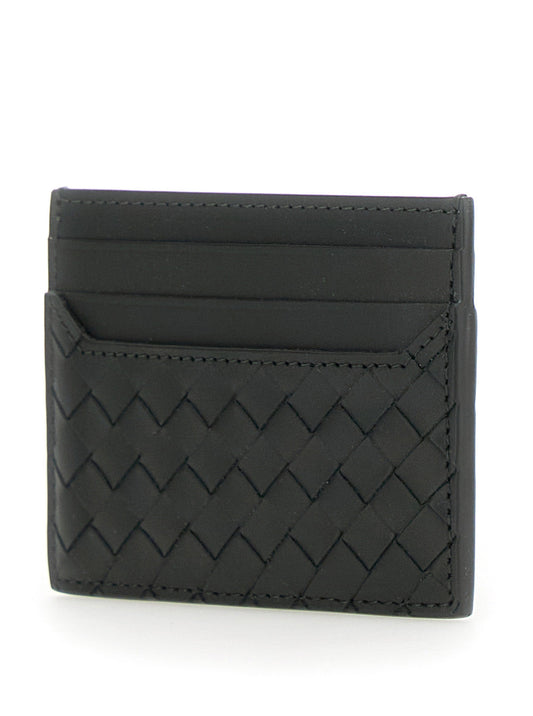 Bottega Veneta Men Green Card Holder With Intrecciato Motif In Leather Man