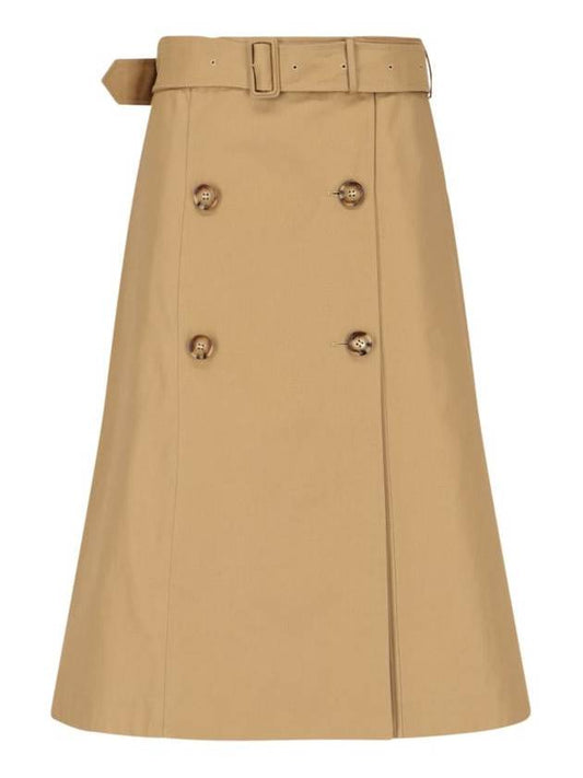 Burberry Belted Double Button A-Line Skirt Brown