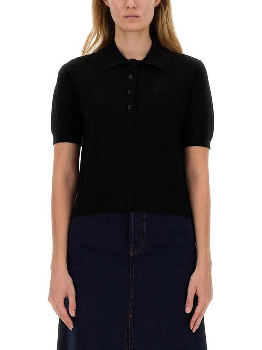 Burberry Slim Fit Cotton Blend Knit Polo Shirt Black