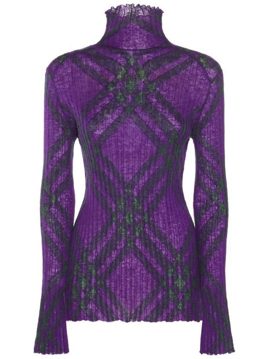 Burberry Check Turtleneck Wool Blend Midi Dress Brown Red