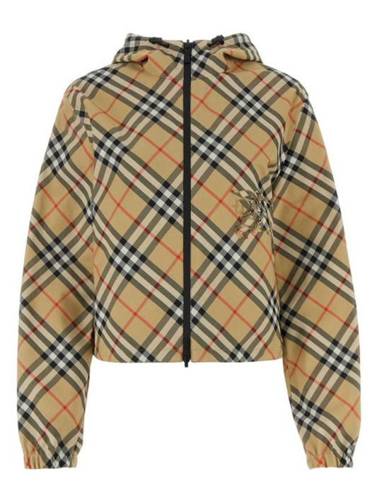 Burberry Crop Reversible Check Hooded Jacket Sand
