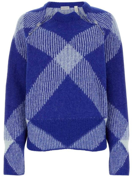 Burberry Women's Check Alpaca Wool Blend Knit Top Night