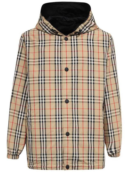 Burberry Reversible Check Nylon Hooded Jacket Black Beige