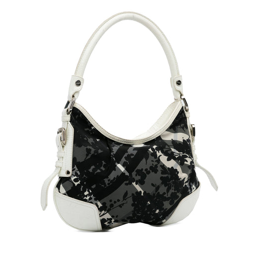 Black Burberry Floral Beat Check Foley Hobo Bag