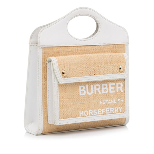 Tan Burberry Pocket Raffia Satchel