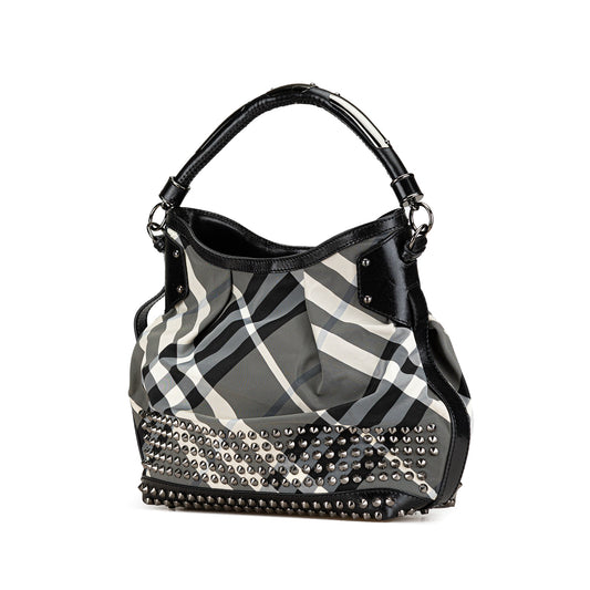 Gray Burberry Studded Beat Check Nylon Tote