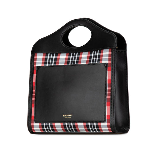 Black Burberry Mini Plaid Canvas Pocket Satchel