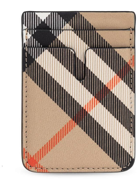 Burberry Engraved Logo Check Half Wallet Archive Beige