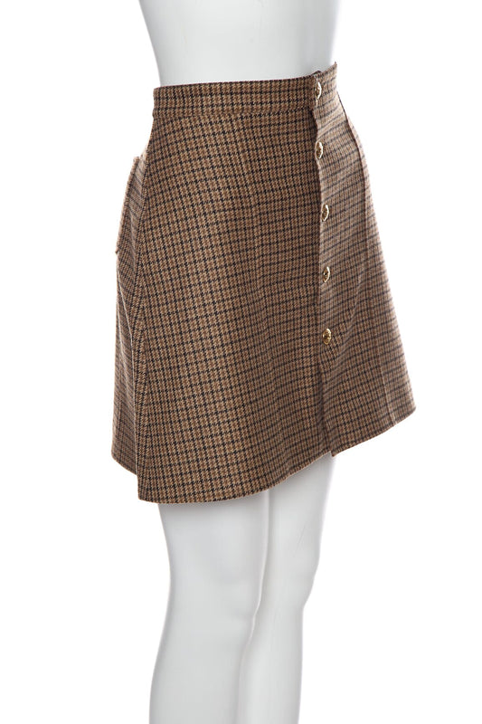Celine Brown Checkered Houndstooth Skirt SZ 38 NWT