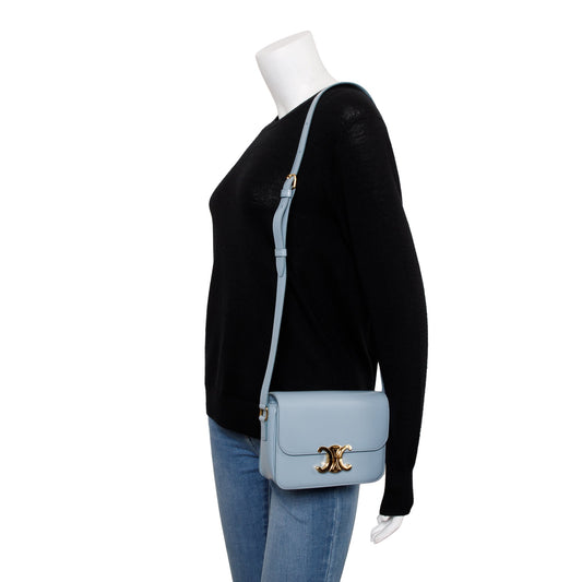 Celine 2023 Blue Shiny Calfskin Leather Teen Triomphe Shoulder Bag