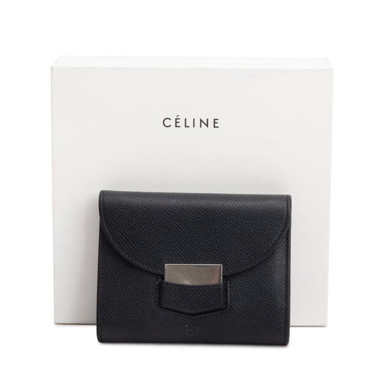 Celine Black Grained Calfskin Leather Small Trotteur Multifunction Wallet w/ Box