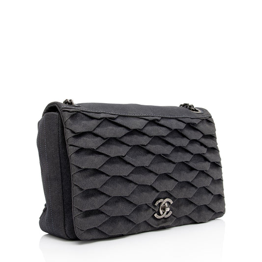 Chanel Pleated Denim Turtle Flap Bag (SHF-2bTG49)