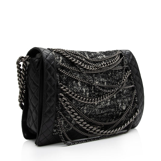 Chanel Tweed Calfskin Paris Dallas Enchained Medium Boy Bag (SHF-JY2dym)